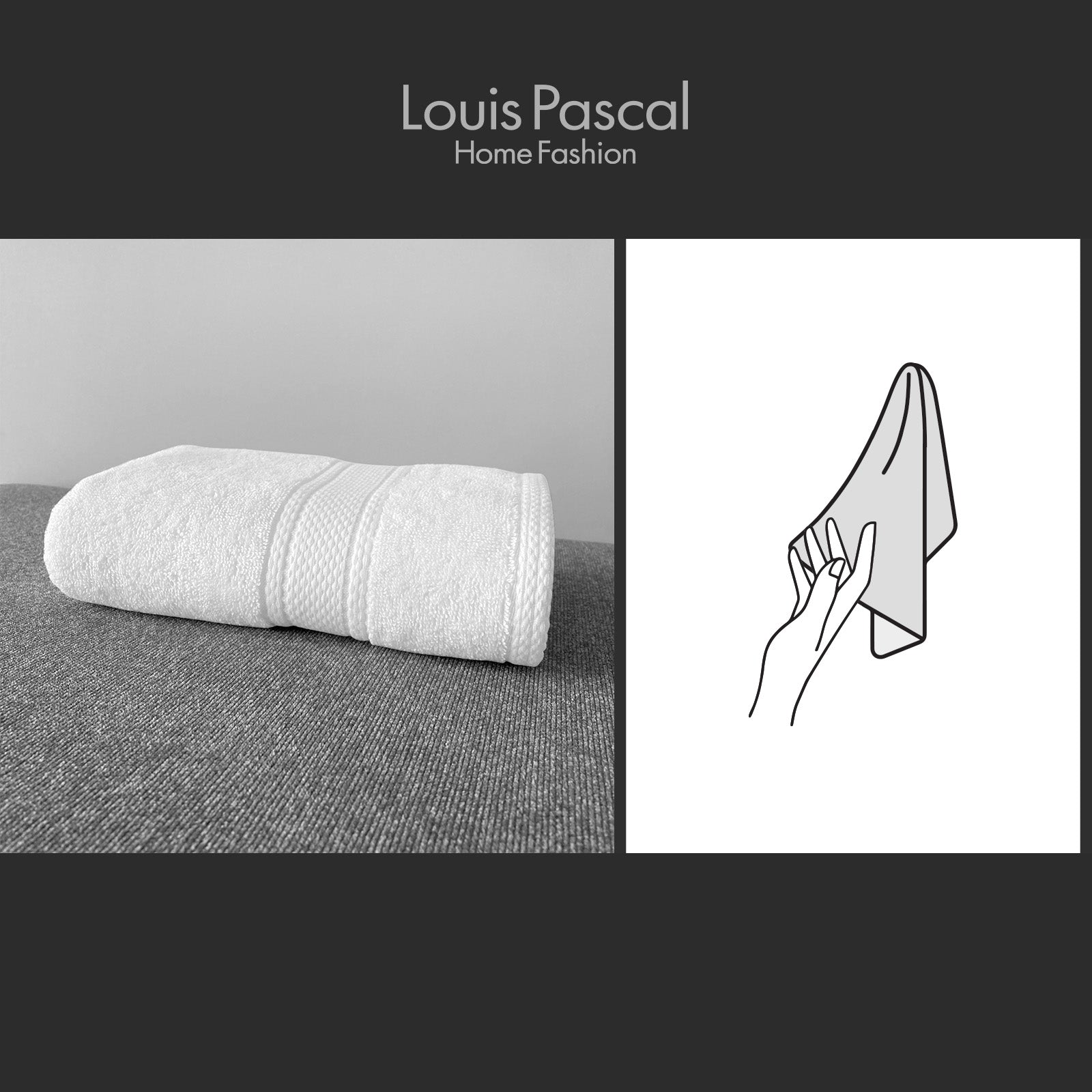 High-quality soft hand towel made from 100% cotton (Size 30 X 50 CM), double stitching, thick selvedge.